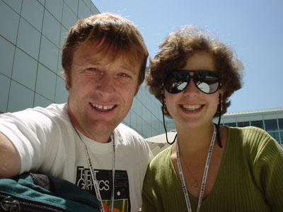 Me and Elena Vileshina having lunch the next day. Elena and I met two years ago at Siggraph in L.A., and have been hanging out together ever since. She's just starting her second year as a Stanford graduate student under Pat Hanrahan.