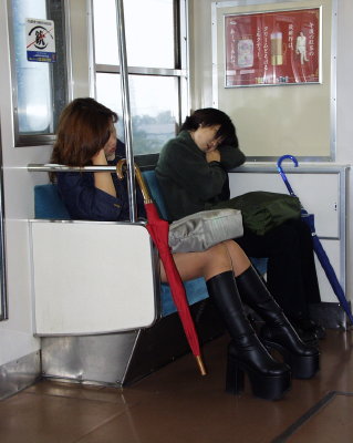 Very popular amoung the young women were these amazing platform boots, which looked nothing less than trecherous to walk in, especially during a rainstorm.