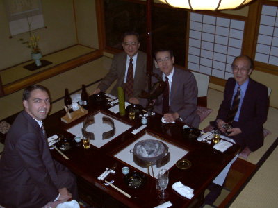 Jeff Boone was my traveling companion on this trip, and we spent most of the time wearing suits and ties, which allowed us to blend pretty easily with the rest of the crowd on the street. Here we are posed outside a very fancy restaraunt where our Japanese hosts took us on our first night with them.